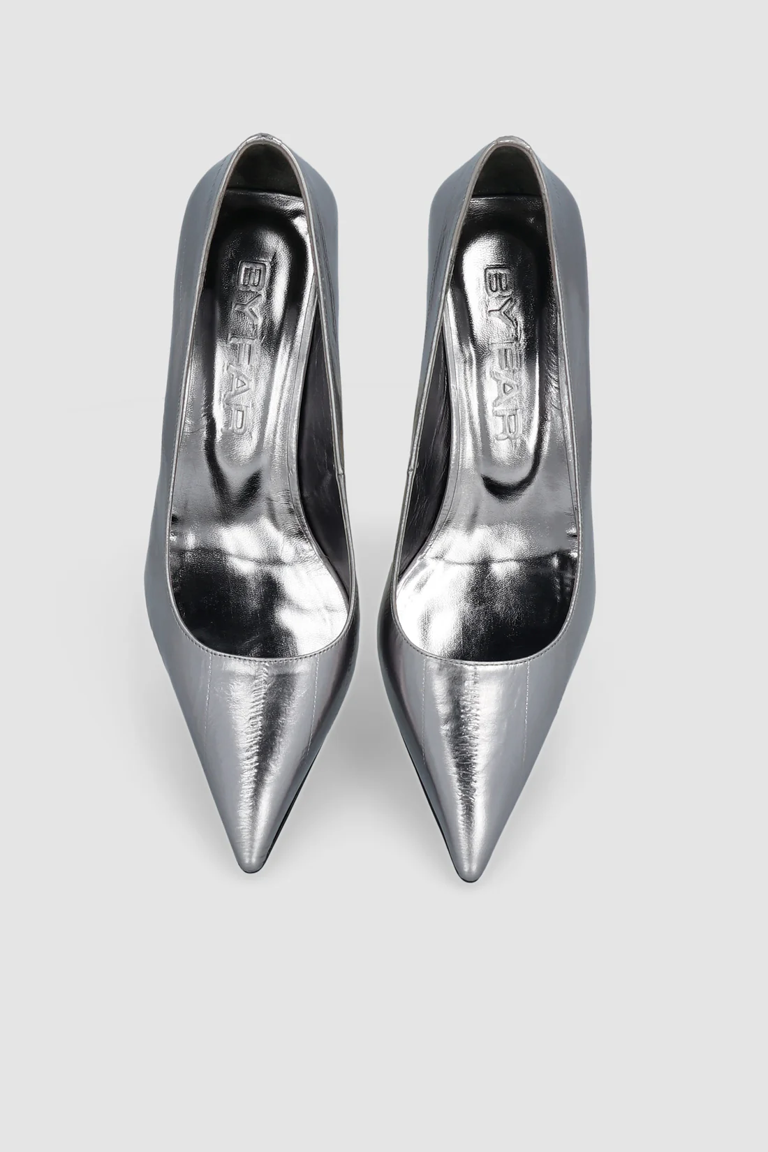 Eel embossed metallic leather pumps with a 9 cm leather-covered sculpted heel and squared back. Made from LWG-certified leather and finished with a pointed toe.
